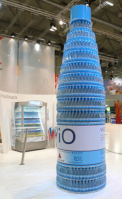Energy Drinks und Softgetränke sind der Renner bei den Erfrischungsgetränken, natürlich Zuckerfrei oder Zuckerreduziert. Lightgetränke buhlen um die Gunst des Verbrauchers, während Fruchtsaftgetränke mit Geschmacksvariationen aufwarten, welche die Taste-Fähigkeit der Zunge an ihre Grenzen stoßen lässt. Es ist halt eben alles eine Frage des Geschmacks. Mineralwässer und Limonaden, abgefüllt in PET-Flaschen, dekorieren in lustiger Anordnung die Stände der weltweit bekannten Marken. Bei den alkoholischen (Bier, Wein, Champagner und Spirituosen) Getränken beschränkt sich das Angebot auf einige wenige Aussteller, was durchaus zu begrüßen ist. Eine bekannte deutsche Brauerei bietet als Neuheit ein Chili-Bier an, was farblich und geschmacklich zur Schote passt. Na denn Prost. Dennoch reicht es völlig aus sich auf dieser ANUGA rundum satt essen zu können, und das fünf Tage lang. Man muss ja seinem gestressten Leib nicht noch den täglichen Vollrausch zumuten.