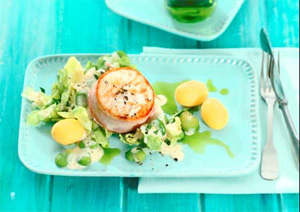Medaillons schneiden, jeweils in eine Scheibe Speck wickeln.