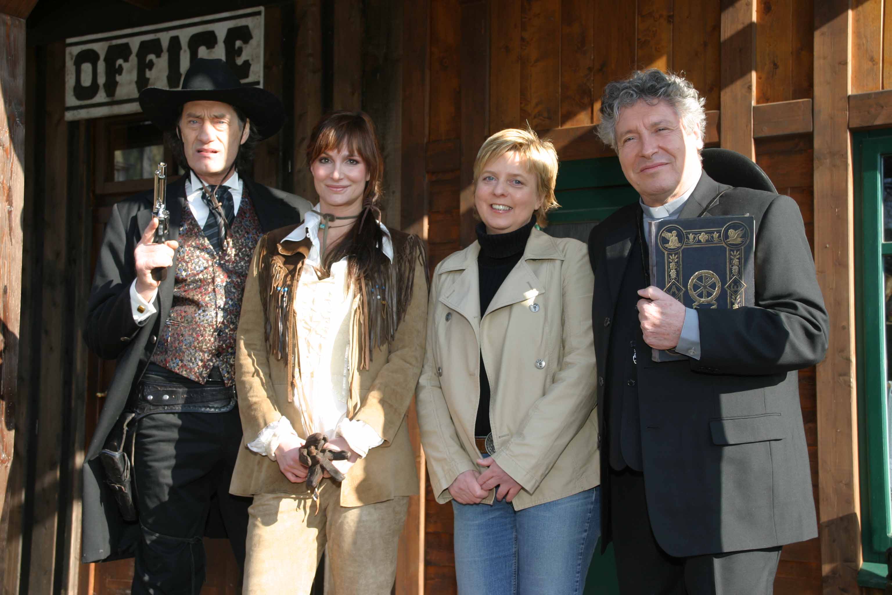 Drei starke Stars in "Winnetou III"Drei Gaststars werden zusammen mit dem scheidenden Winnetou-Darsteller Gojko Mitic die Saison 2006 am Kalkberg prägen. Die Karl-May-Spiele präsentieren Alexandra Kamp als Ärztin "Dr.Kate Brody", Volker Brandt als Priester "Vater Hillmann" und Winfried Glatzeder als Schurken "Santer". Erstmals in der 55-jährigen Geschichte der Spiele wird das Abenteuer, das mit Winnetous Tod endet, unter seinem Original-Titel gezeigt. (Ute Thienel, Geschäftsführerin der Karl-May-Spiele (2.v.r.)