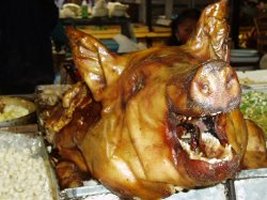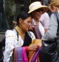 Souvenirs Souvenirs Indiofrau Frauen am Markt Schal-Verkaeuferin Indiofrau Schnellimbiss Eine Delikatesse Garkueche in Quito vorher...Im Backofen Meerschwein Braten Guten Appetit