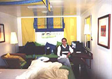 Zweckmäßigkeit ist halt auch auf einem „Schiff der Lebensfreude“ ein Grundsatz, dem sich alle Innenarchitekten und Schiffsbauer unterzuordnen haben. Schließlich soll das „Freudenschiff“ Gewinn einfahren, und das so schnell wie möglich. Wir belegten eine Zweibettkabine. Kein Firlefanz, kein Schnickschnack, aber rundum gelungen, sowohl von der Aufteilung als auch der Gestaltung her. Das Bett ist breit genug – bei Seegang hat das seine Vorteile. Die Dusche erfüllt alle Ansprüche an eine gründliche körperliche Reinigung. Schränke und anderes Mobiliar bieten ausreichend Stauraum für Garderobe und private Utensilien. Fernsehen, Telefon und ein Fön sind obligatorisch. Sogar ein sonnendurchglühter Webstoff-Himmel wölbt sich über besagtem Bett; für den unwahrscheinlichen Fall, dass über der AIDAvita tatsächlich einmal keine Sonne scheinen sollte. Darüber hinaus sorgen zahlreiche Novitäten im Zwei- und Vierbettbereich für eine weitere Verbesserung des Angebotes. Auch für eine nochmals verbesserte artgerechte Unterbringung von Familien ist gesorgt, ein Kundenstamm, dem Seetours schon auf der AIDAcara seine Aufmerksamkeit widmete.