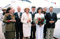 Pünktlich um 18 Uhr befahl Kapitän Dr. Friedhold Hoppert „Leinen los!“ und steuerte den Kreuzfahrtriesen zur Tauffahrt souverän Richtung Helgoland. „Reisen mit dem Schiff ist die größte Form von Freiheit. Und Freiheit ist für mich der größte Luxus“, freute sich Iris Berben gegenüber Käpt’n Hoppert, der ausgesprochen stolz war, die attraktive und prominente Schauspielerin als Taufpatin an seiner Seite zu wissen.