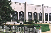 Seit jenen Tagen läuft auch die deutsch-polnische Grenze durch Bad Muskau und den Park. Aber beide Seiten bemühen sich seit einigen Jahren gemeinsam darum, ihm sein einstiges Aussehen wieder zu geben. Vom Parkgelände am Postplatz unweit des Grenzübergangs in der Stadt gelange ich zum so genannten "alten Schloss"- ein einfacher, weisser Bau, noch zu DDR-Zeiten restauriert. Hier befindet sich ein kleines Museum, betrieben vom Freundeskreis Bad Muskau - denn die letzten ABM-Kräfte wurden Anfang dieses Jahres mangels Finanzmittel entlassen. Jede Besuchermark ist deshalb willkommen. Vor allem der Wiederaufbau des "neuen" Schlosses kostet viel. Unmittelbar nach Kriegsende war es durch Brandstiftung in Flammen aufgegangen. Heute sind Türme und Dächer wieder eingedeckt, zwei Gebäudeflügel wieder eröffnet.